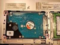 Unscrew the two remaining 5mm Phillips head screws on the left and right side of the hard drive bay cover.