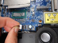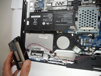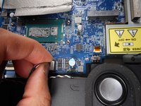 Remove a total of four 8mm screws with the Phillips #2 screwdriver from the speaker located below the motherboard.