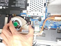 Remove four 9mm screws from the fan attachment located on the motherboard with a Phillips #1 screwdriver.