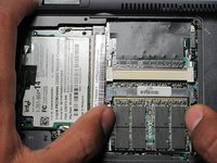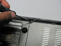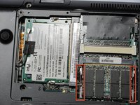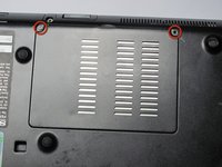 With the laptop still flipped over with the Vaio logo facedown, locate the screws for the RAM