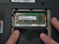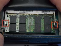 Apply light outward pressure to the locks on either side of the RAM. Rotate the RAM up slightly. Pull the RAM toward you to remove it.