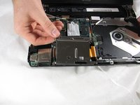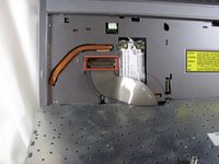 Locate the hard drive disk. The hard drive disk will be covered by a shiny lid.