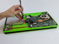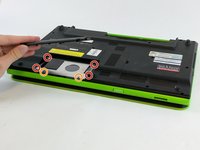 Locate the screws securing the optical drive to the laptop chassis. These screws are typically positioned near the drive bay, accessible once the bottom panel is removed.