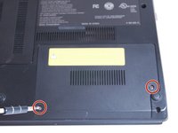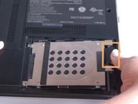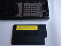 Use a Phillips #00 screwdriver to remove the two 7.7 mm screws from the hard drive cover and place it to the side.