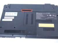 Use your fingernail or a plastic tool to lift the battery. Rotate the battery up and away to remove from the laptop.
