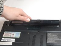 Use your fingernail or a plastic tool to lift the battery. Rotate the battery up and away to remove from the laptop.
