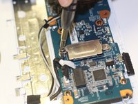 Using the pointed end of a spudger, lift up on the black latch that is holding the ribbon cable in place.