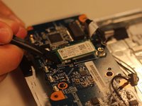 Gently fit the flat end of a spudger under the edge of the bluetooth card. Then, lightly pry up on this edge to release the card from the motherboard. (Refer to the third image)