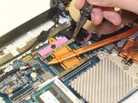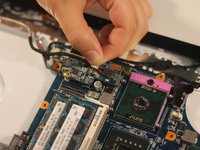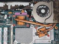 Using a Phillips #00 screwdriver, unscrew the six 2.7 mm screws that secure the fan to the motherboard.