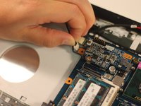 Using your fingers, grasp the white tab and firmly, yet gently, pull up on the wire to disconnect it from the motherboard.
