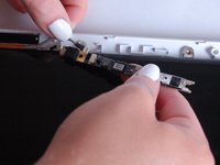 Slowly disconnect the two ribbon cable connectors by sliding them towards the wire to disconnect the webcam from the laptop.
