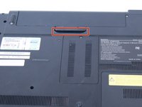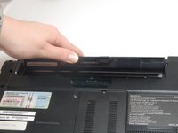 Use your fingernail or a plastic tool to lift the battery. Rotate the battery up and away to remove from the laptop.