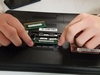 Pull apart the metal sides on the sides of the top RAM stick to pop it up.