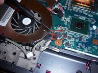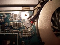 Now you should see a cord running around the outside of the fan with two red wires and two black wires, this is the dc jack wires.