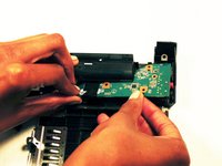 Remove the screws holding the headphone jack board down.