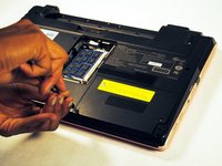 Locate the screw that holds the small panel covering your laptop's Ram. This panel should be in the dead center of your laptop.