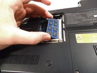 Slide RAM chip out by holding the sides of the chip and pull away from the computer.