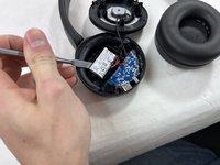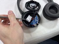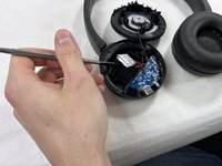 Move the tool to different spots around the base of the headphones to pry it up until the covering comes off.