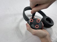Move the tool to different spots around the base of the headphones to pry it up until the covering comes off.