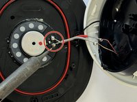 With the speaker panel removed, desolder the wires connecting the speaker.