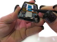 Using tweezers, unplug the gold band connecting the device and circuit board.