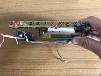 Lift the buttons board from the power button end, and release the other end from beneath a retaining tab.
