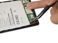 By using the tweezers, unclip the cable at the bottom right by pulling it up.