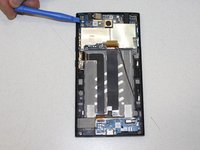 Use the plastic opening tool to remove the unscrewed top and bottom portion of the phone.