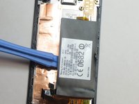 To remove the battery, slide a flat object under the battery and lift it. The plastic opening tool will be the best tool for this task.