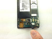 Lay the phone down as shown. Then use tweezers to pull additional power circuit up gently to remove it as shown.