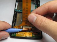 Use the plastic opening tool to detach the ear piece speaker.