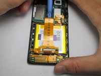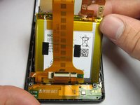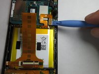 Use the plastic opening tool to detach the ribbon running across the battery.