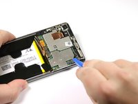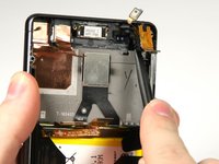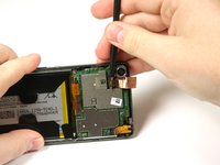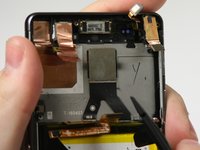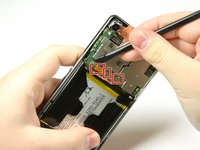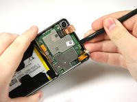 Use the flat end of the spudger to peel up the copper tab to the right of the back camera.