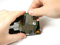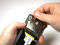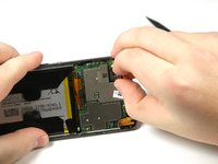 Pop off the small connector on the right side of the motherboard with the plastic opening tool.