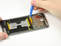 With the spudger, pry the headphone jack located in the top right corner of the phone.