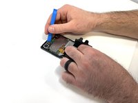 Insert a spudger into the opening above the charging port, and apply gentle pressure to free the speaker piece.