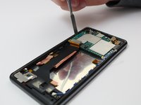 Using a plastic spudger, lift the motherboard upwards in order to separate it from the phone.
