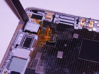 To remove the headphone jack, cut the sticker between the headphone jack and the midframe with sharp tweasers.