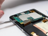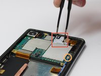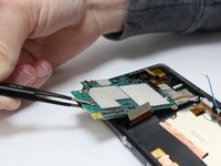 As the motherboard is lifted up, grab it with a pair of tweezers and lift it out of the phone.