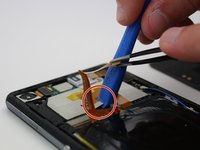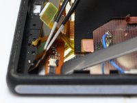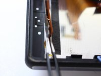 Next, use an opening pick to begin prying the screen from the device. Make sure to be careful, as it is common for the screen to shatter when removing it. Once removed, note where it is connected.