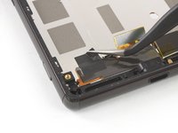 Slide the opening pick around the top left corner of the screen to loosen the remaining adhesive.