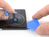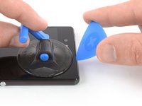 Use the suction handle to pull up the screen and insert just the tip of an opening pick under the right edge of the speaker recess.