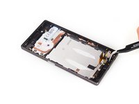 Cut adhesive at the top of the audio jack and noise canceling mic, then remove it.