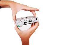Grab the two tabs located near the back of the stereo, and gently pull the CD-drive front the rest of the device.