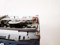 Using the Phillips #0 Screwdriver, unscrew the two gold screws (length - 7.37mm) found on top of the CD Tray.