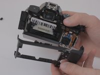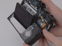Once the screws have been removed, unsnap and lift the rear plastic cover off of the camera.