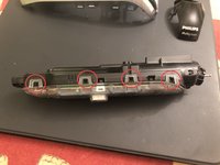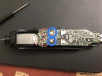 facoltativamente puoi dissaldare i punti Rossi per separare la scheda logica dal motore, ed eseguire in maniera più comoda le operazioni di sostituzione delle batterie