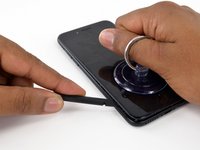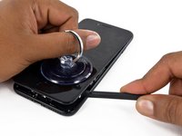 Tira verso l'alto la ventosa per sollevare il display e aprire l'iPhone.