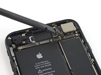 Rimuovi lo spudger dal lato sinistro dell'iPhone e inseriscine l'estremità piatta nell'angolo inferiore destro del dispositivo.