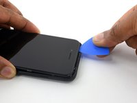 Fai scorrere uno strumento di apertura lungo il lato superiore della iPhone, tra il case posteriore e il pannello anteriore, per rompere la parte restante dell'adesivo che tiene in posizione lo schermo.